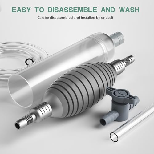 - Special Design: Our fish tank vacuum cleaner is made of durable ABS material and thickened PVC hose. It comes with an enlarged and thickened air bag and an outlet adjustment valve. A gentle pinch can suck away debris to change water easily, and the outlet valve can be adjusted left or right to inject the flow rate you need.